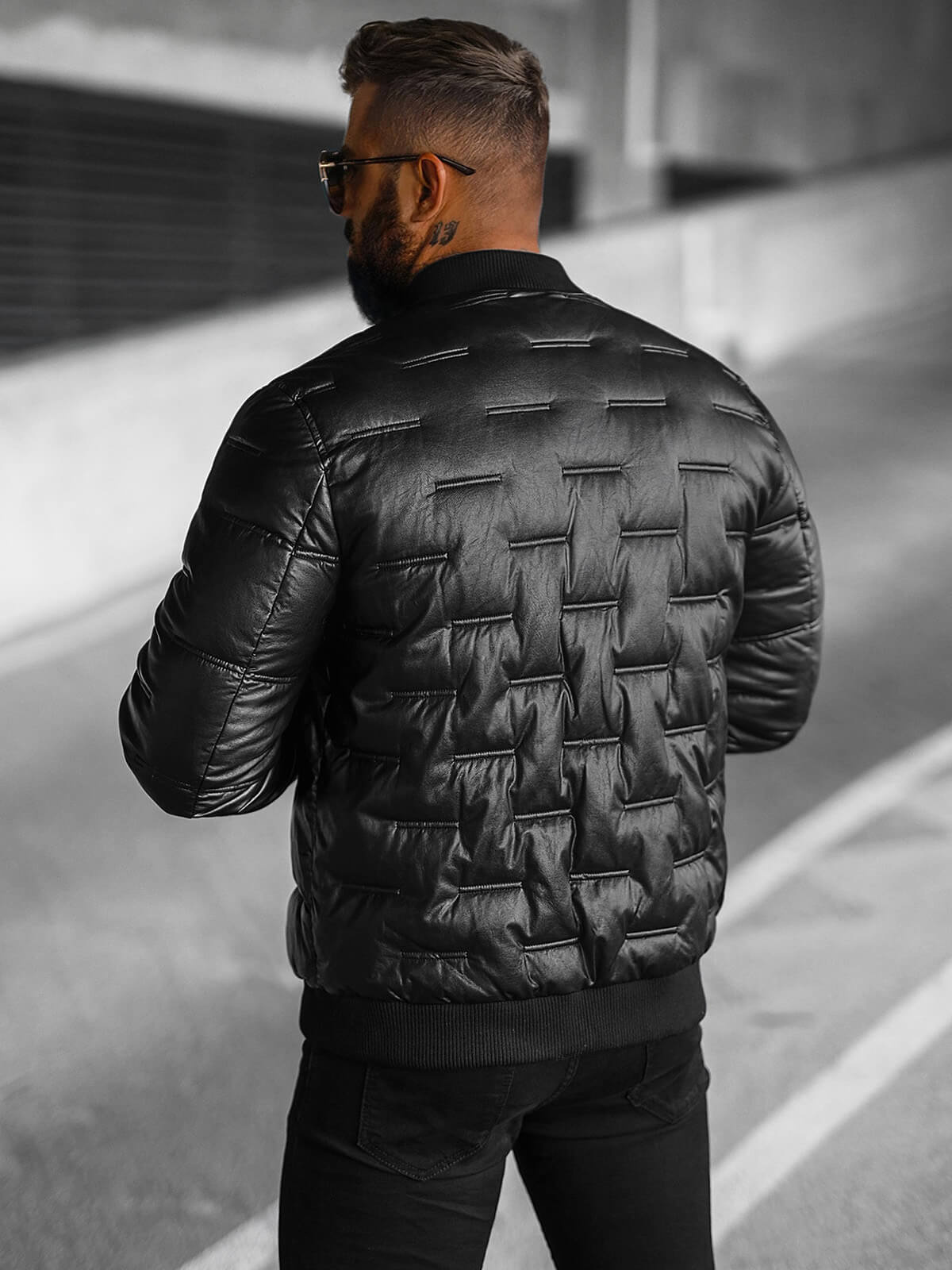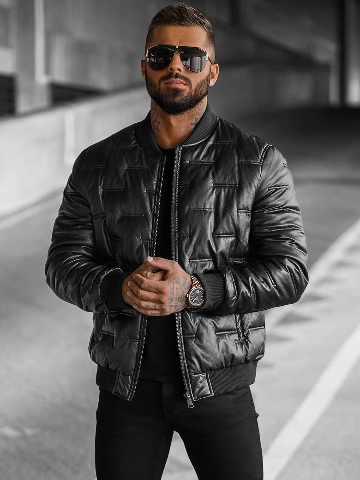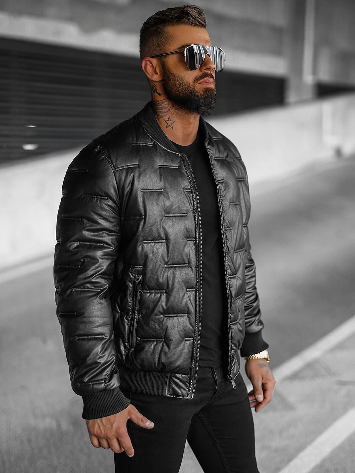 Pánská kožená bunda bomber černá OZONEE O/11Z8099Z