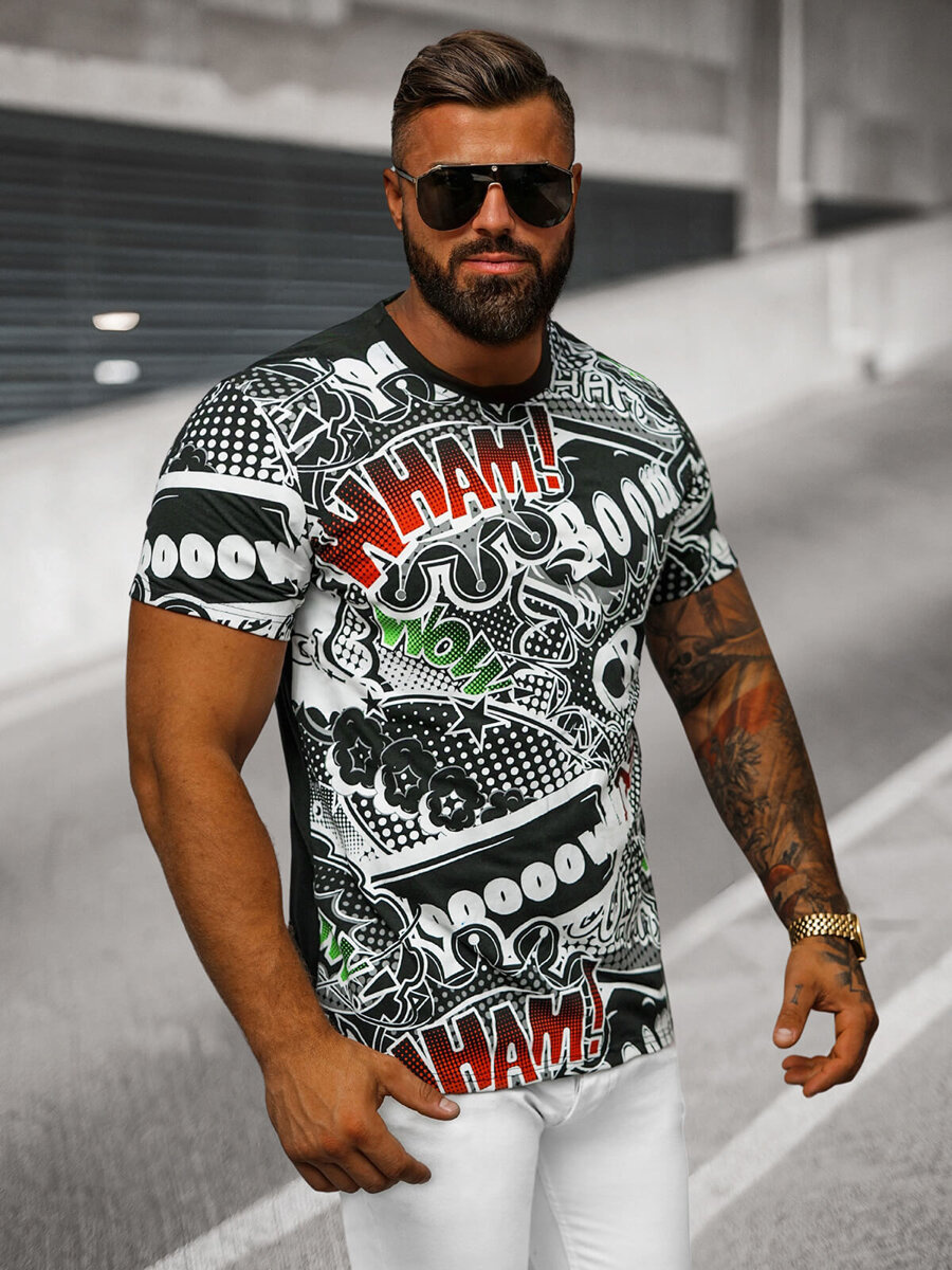 Oblečením takového trička s komiksovým potiskem efektně vystoupíte z davu. Naše tričko oživí každý ležérní outfit. Můžete jej nosit na setkání s přáteli, na večírek nebo na koncert. S pomocí trička můžete vytvořit mnoho módních outfitů. Velmi dobře se bude hodit k dalšímu pánskému oblečení z naší nabídky. Zkombinovat ji můžete například s bomberem a joggery.