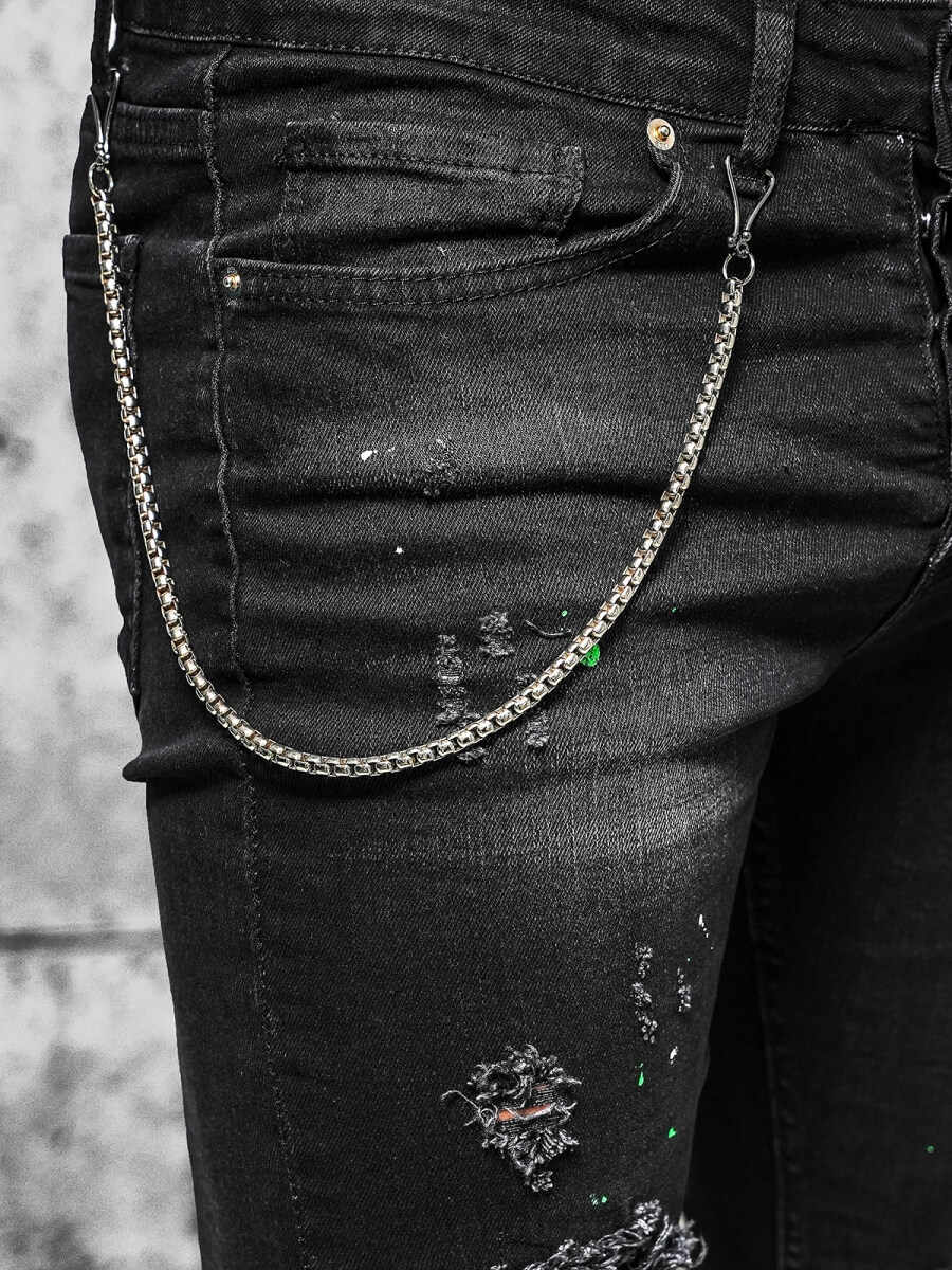 Typ Slim Fit, Přizpůsobí se postavě, Módní odírání, Přední a zadní kapsy, Ozdobný odnímatelný řetízek