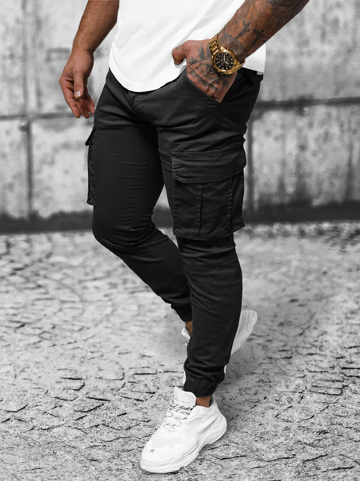Představené pánské jogger kalhoty jsou nabídkou pro muže, kteří ocení pohodlí a zároveň chtějí vypadat stylově. Jsou vyrobeny z nejkvalitnějšího materiálu a zaručují pohodlí při celodenním nošení. Mají žebrované nohavice a praktické kapsy na přední, boční i zadní straně. Kalhoty pocházejí z nejnovější kolekce značky OZONEE, která vždy sleduje nejnovější trendy.