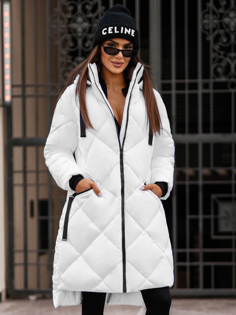 Dámská zimní bunda dlouhá prošívaná bílá OZONEE JS/5M3168/281