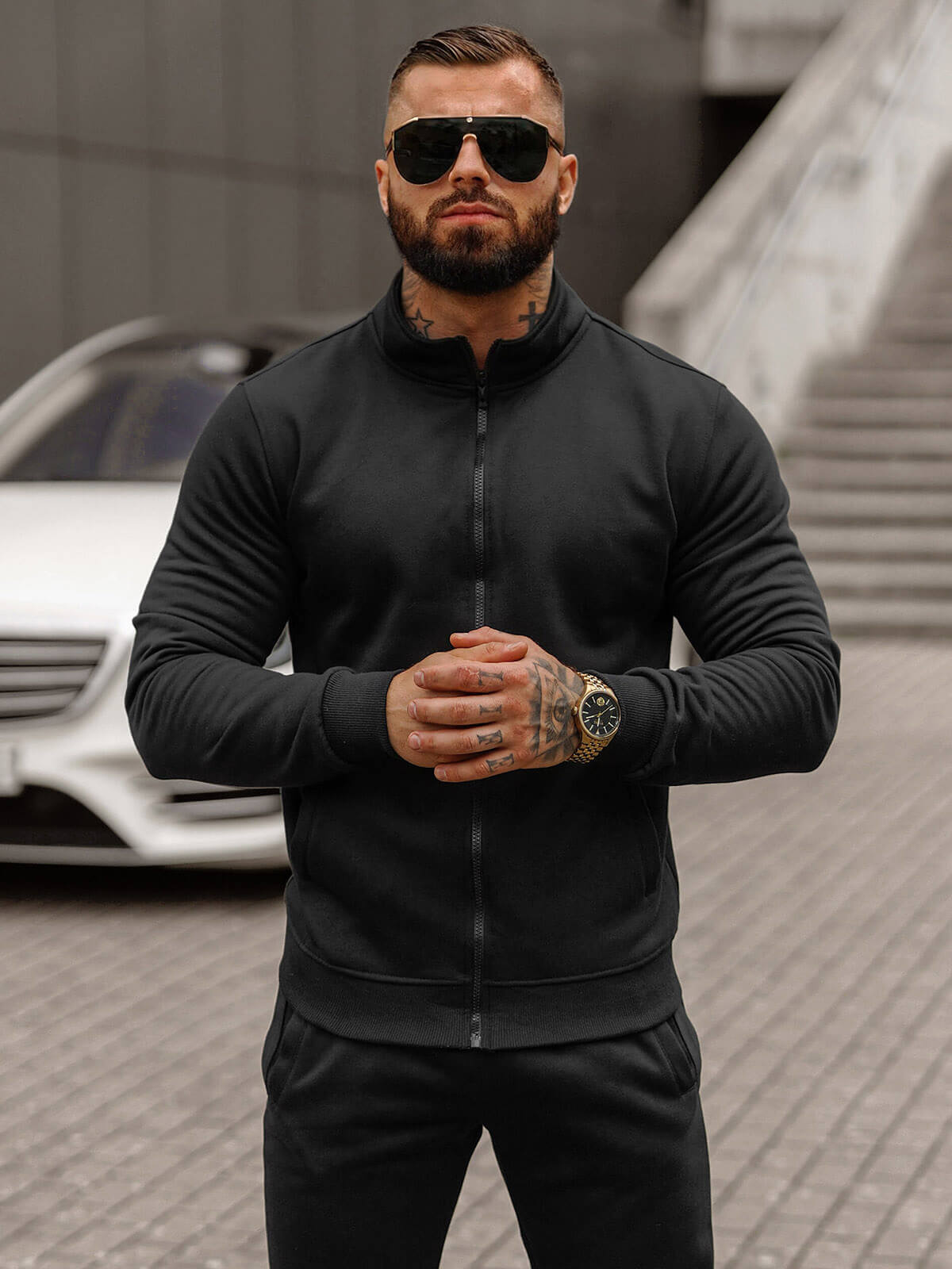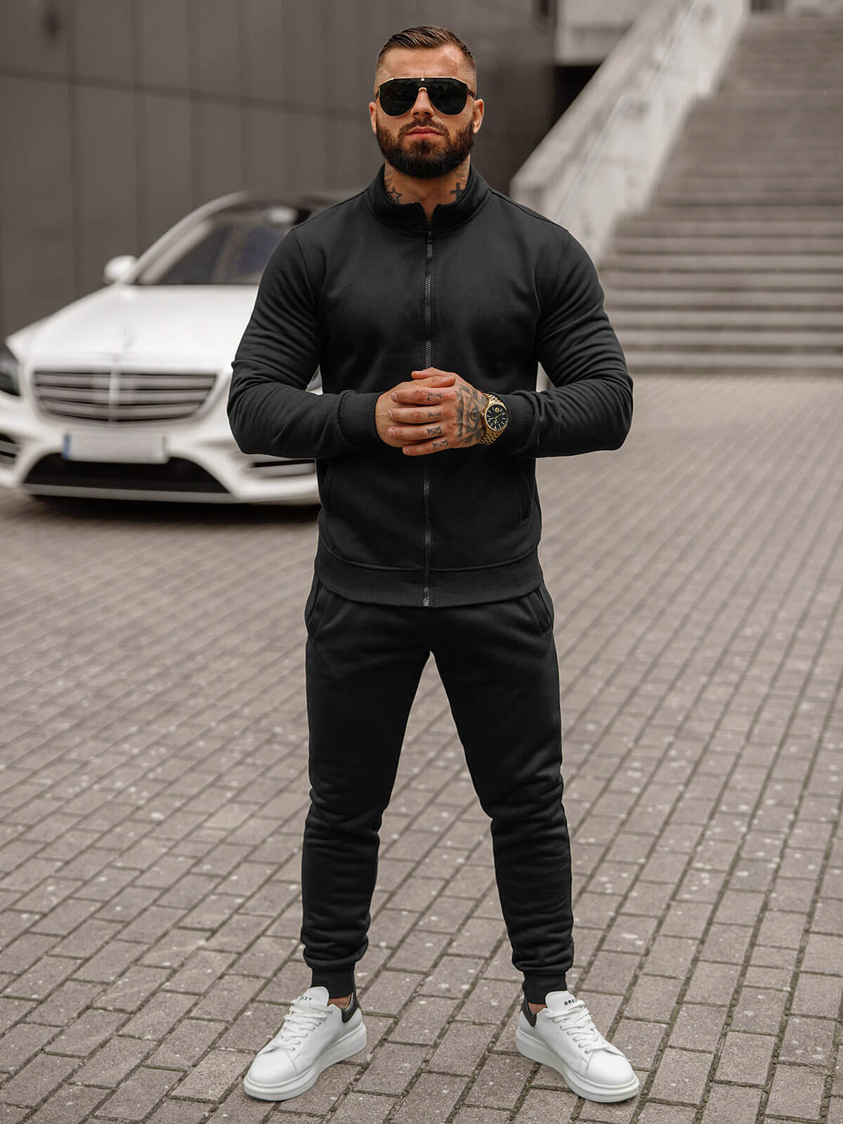 Pánská tepláková souprava se skládá ze dvou prvků. Jsou to mikina na zip s kapsami na bocích zakončená stahováním a kalhoty s kapsami na bocích se stahováním. Souprava je vyrobena z kombinace bavlny a polyesteru, díky čemuž krásně se přizpůsobi postavě, příjemně se nosí, je příjemná na dotek a rychle schne.
