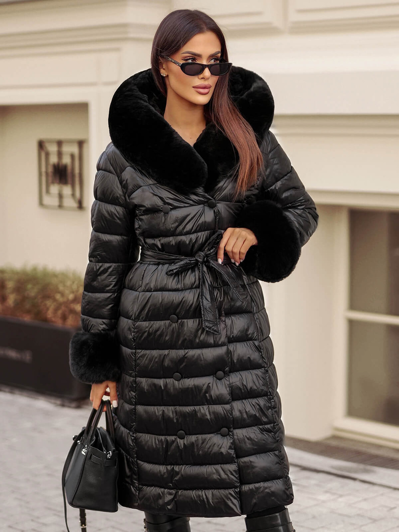 Tento elegantní dámský kabát z nejnovější kolekce je ideální volbou pro chladné zimní dny. Má zapínání na knoflíky, kapuci, módní prošívání a ozdobnou kožešinu, kterou lze odepnout na rukávech. Kapsy na zip na bocích poskytují praktický úložný prostor pro drobnosti. Kabát je vyroben z vysoce kvalitního nylonu (100 %) a poskytuje nejen styl, ale také pohodlí při nošení.