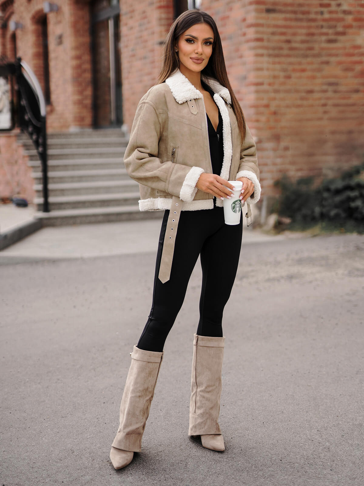 Dámská Kožená Bunda Béžová OZONEE O/81331
