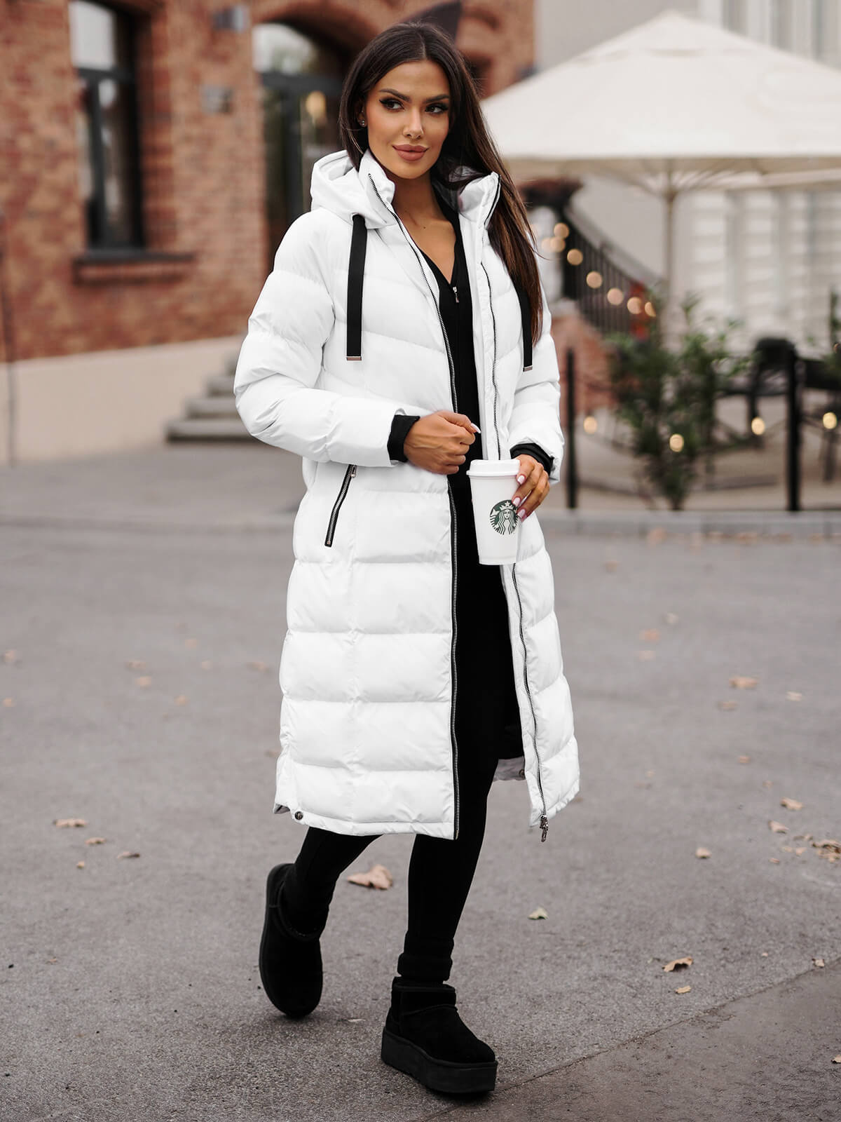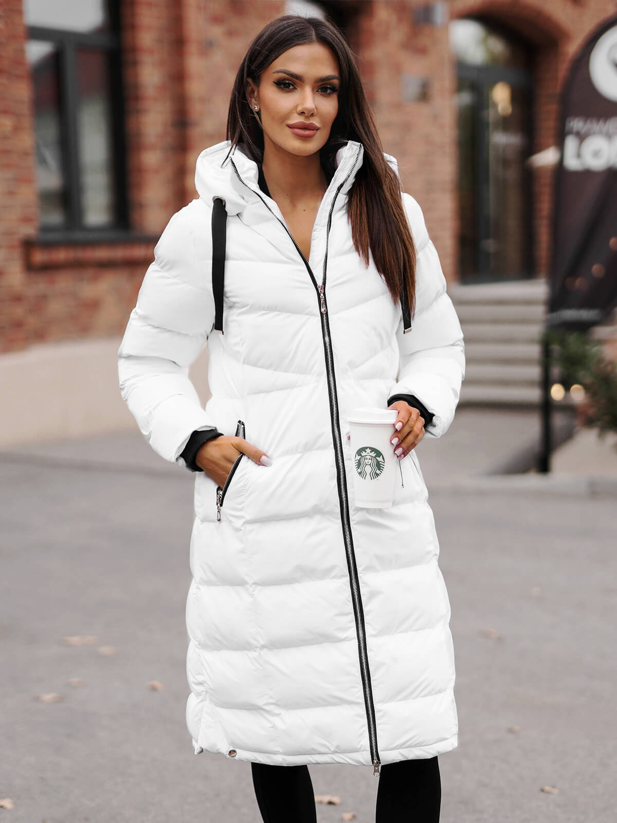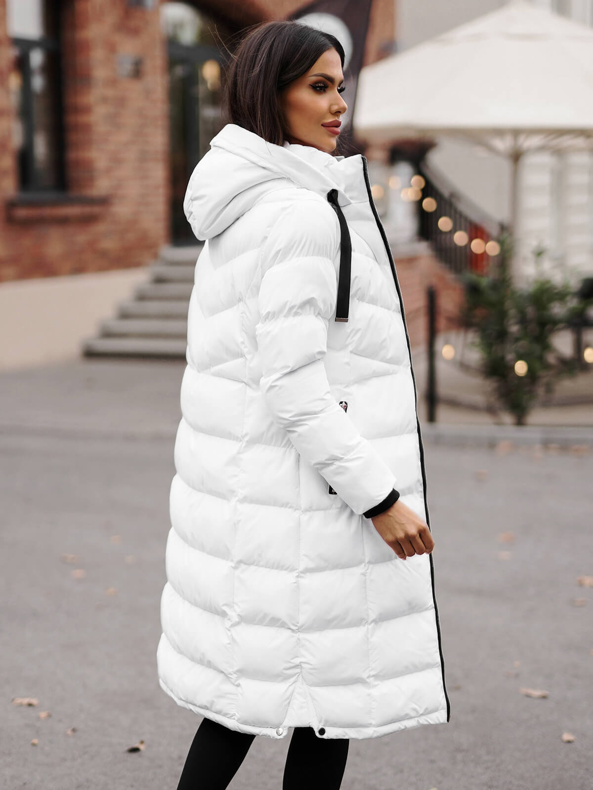 Modelka na fotografii měří 178 cm a prezentuje bundu ve velikosti M. Dlouhá dámská bunda z nejnovější kolekce je ideální volbou pro ženy, které oceňují styl i pohodlí nošení.