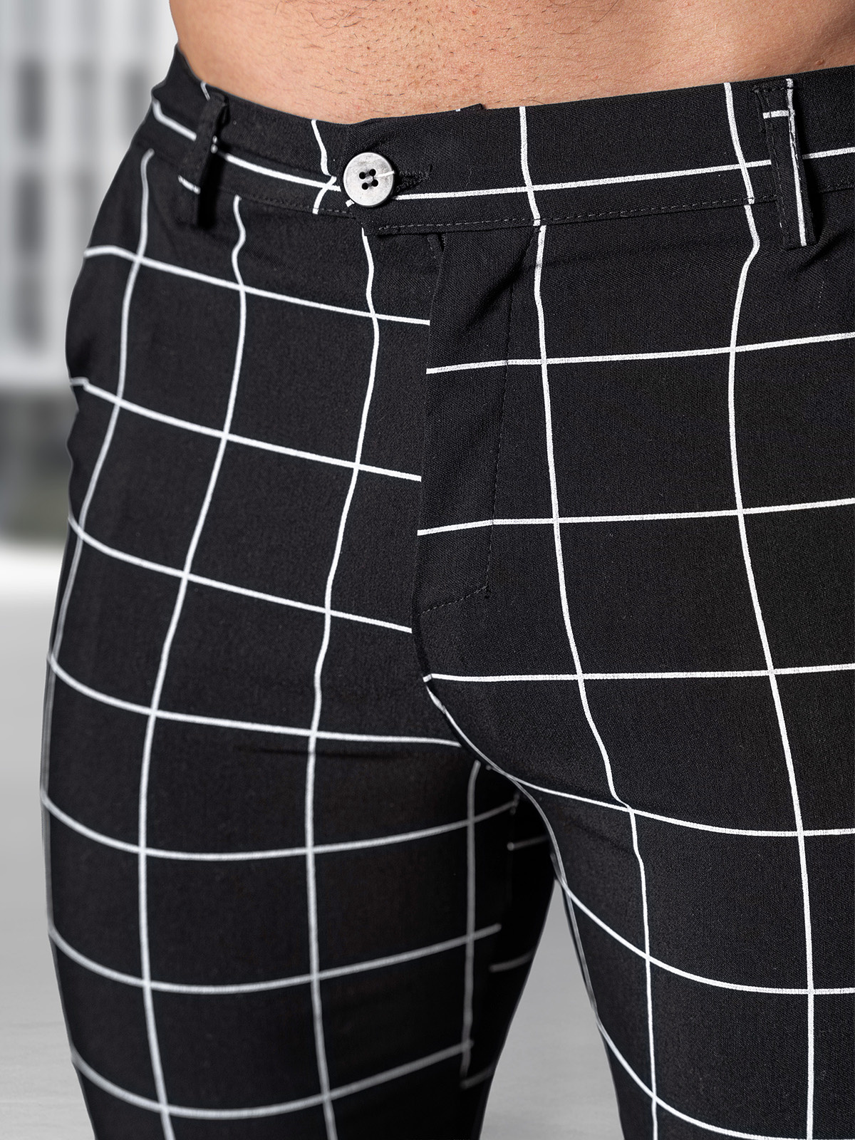 Kalhoty mají střih slim fit , tedy s úzkými nohavicemi. Zdobí je univerzální, nadčasový károvaný vzor. Na přední i zadní straně kalhot jsou praktické kapsy, kam schováte potřebné drobnosti, jako jsou klíče, telefon nebo peněženka. Kalhoty jsou vyrobeny z kombinace umělého hedvábí, nylonu a elastanu, díky čemuž krásně padnou na postavu, nemačkají se a rychle schnou.