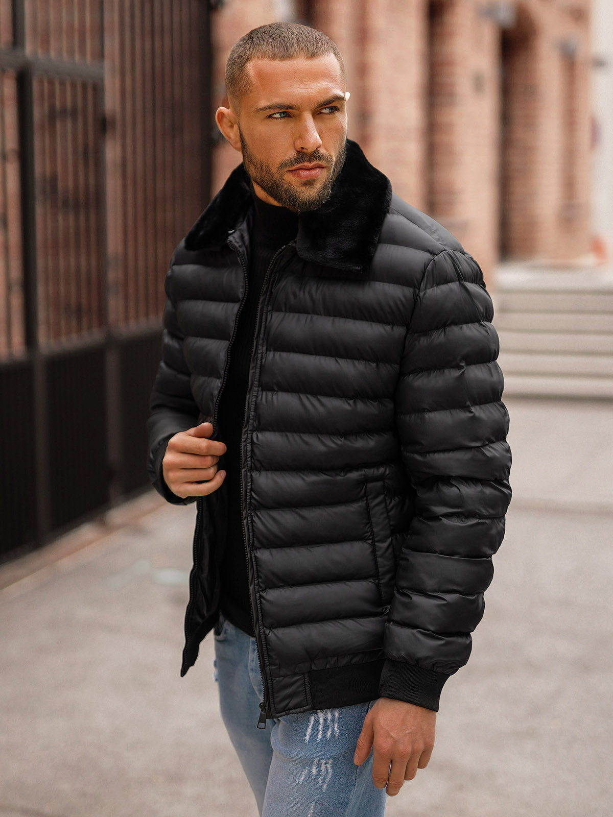 Moderní elegance a městský styl - pánská prošívaná bunda černá OZONEE JS/31M5012