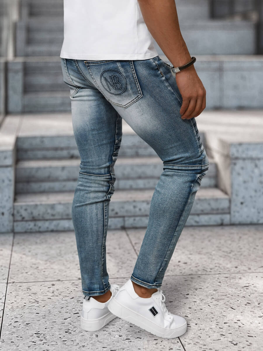 Kalhoty z nejnovější kolekce. Mají slim fit střih, který se vyznačuje úzkými nohavicemi. Vepředu džínů jsou kapsy, kam schováte potřebné drobnosti jako peněženku, klíče nebo telefon. Prošívání zakrývající kalhoty působí velmi originálně, poutavě. Džíny byly vyrobeny z kombinace bavlny, polyesteru a elastanu, díky čemuž jsou příjemné na dotek, pohodlné na nošení, pěkně sedí na těle, nevytahují se a nemačkají se.