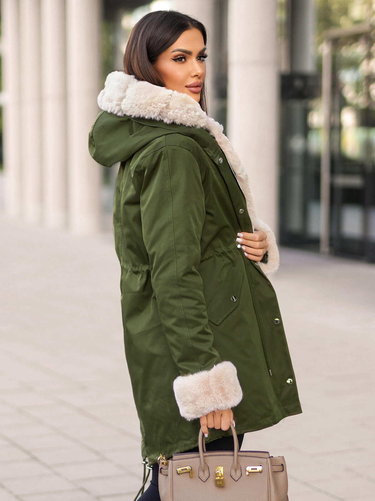Styl a pohodlí v jednom - Dámská zimní bunda s kožešinou zelená OZONEE JS/M763/136Z