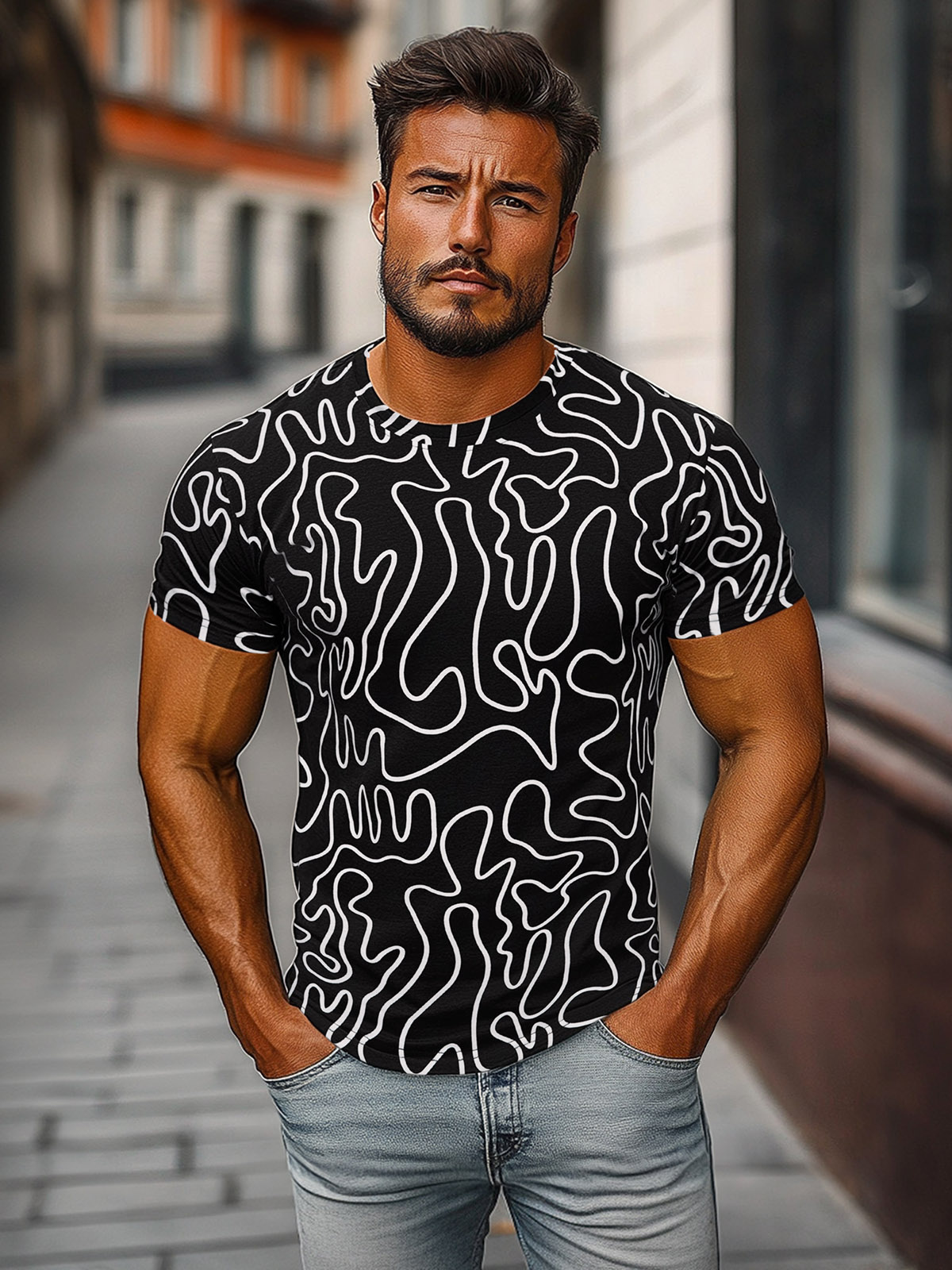 Extrémně stylové černé pánské tričko OZONEE JS/8T1198/3
