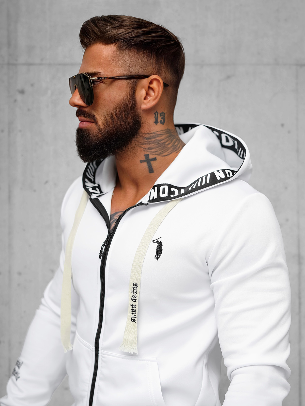 - Materiál: 80% Bavlna, 20% Polyester, Na modelu (182 cm, 87 kg) je velikost L.