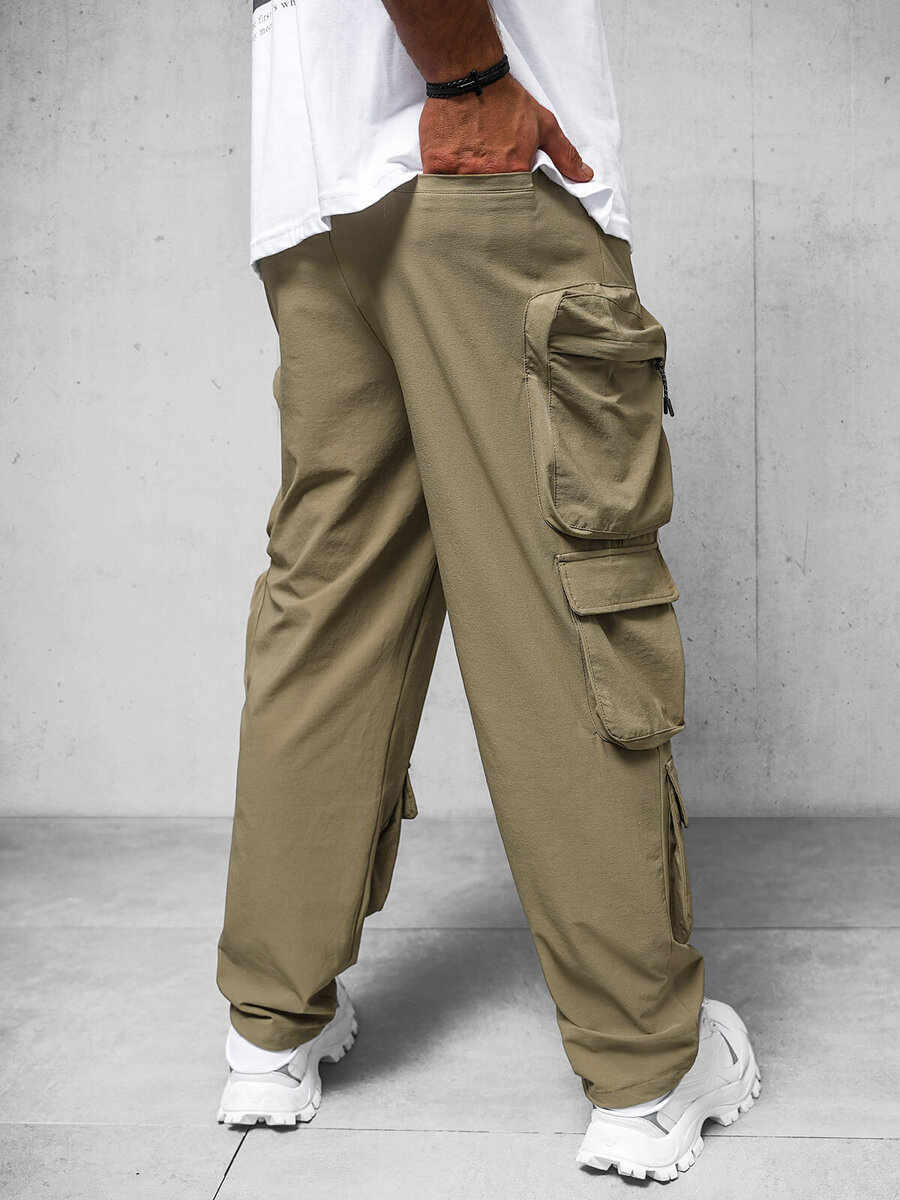 Pánské kalhoty cargo s širokými nohavicemi tmavě béžové barvy OZONEE O/PS5528 - Moderní a klasika