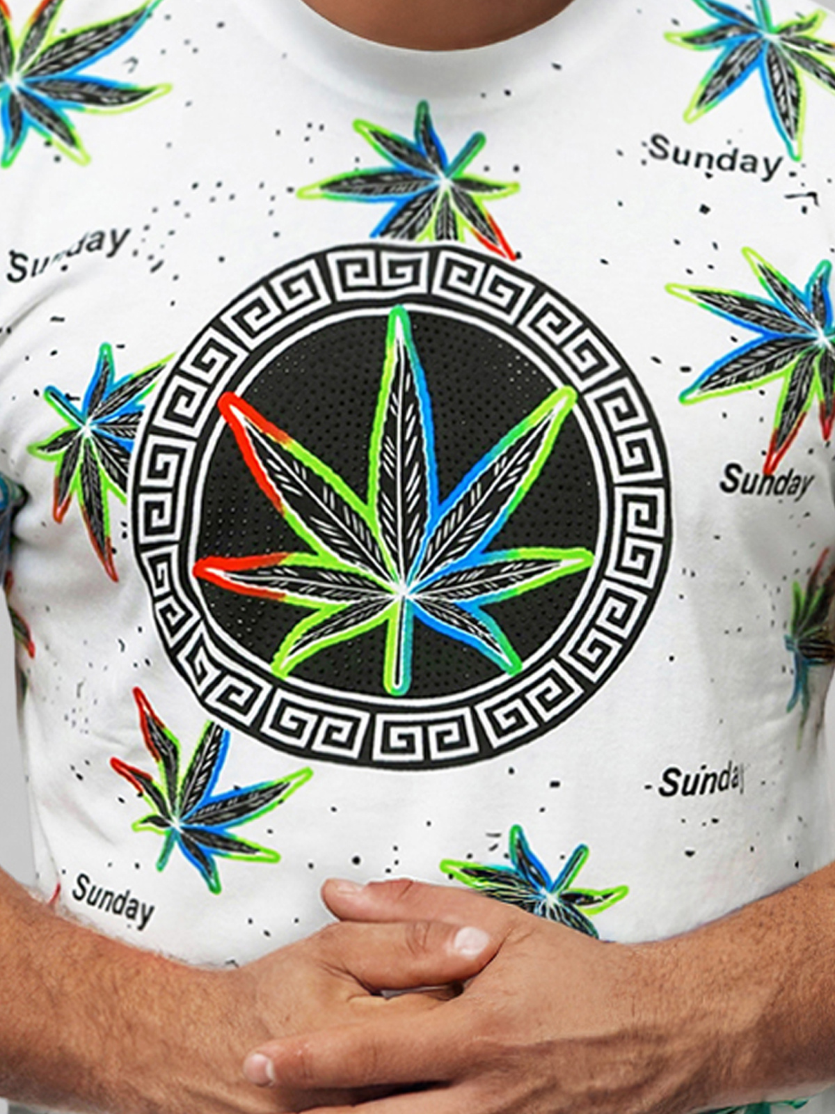 - Potisk na přední straně a rukávech