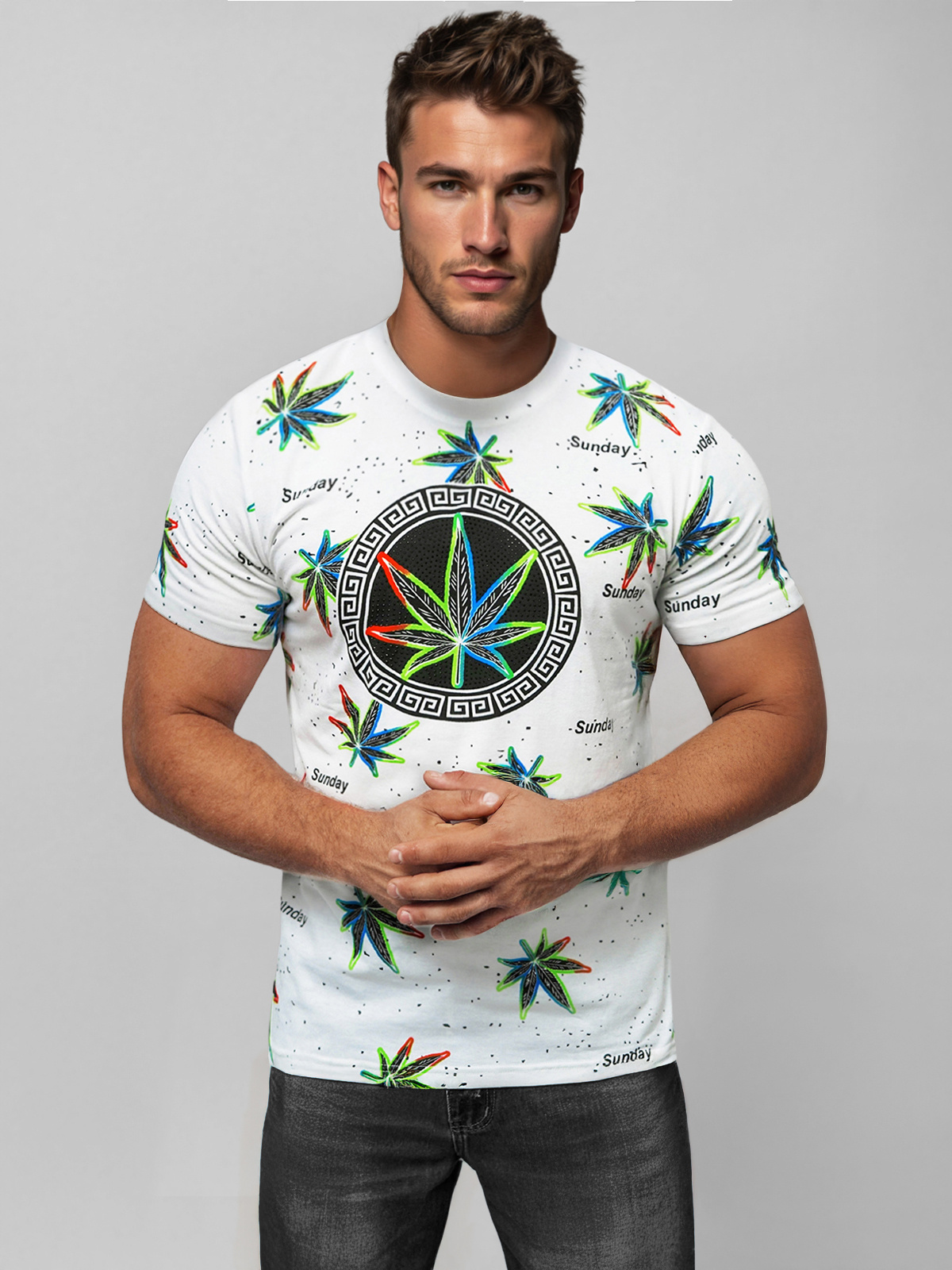 Tričko pochází z nové kolekce našeho internetového obchodu. Má kulatý výstřih ve tvaru U. Přední stranu a rukávy trička zdobí barevný potisk a lesklé zirkony. Tričko je vyrobeno z vysoce kvalitní bavlny a polyesteru, takže se pěkně přizpůsobí tělu, nemačká se, nevytahuje, nesráží a neztrácí tvar, rychle schne a snadno se udržuje, je příjemné na dotek a pohodlné na nošení.