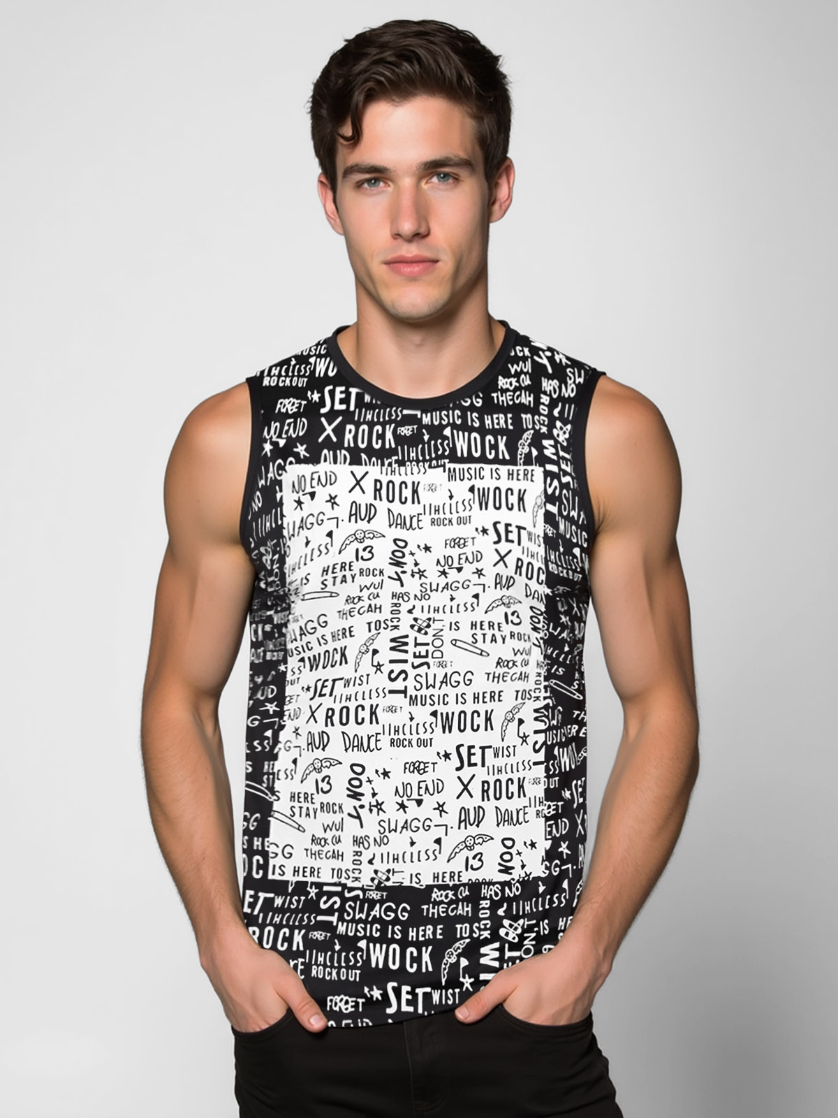 Tričko má střih tílka, tj. bez rukávů. Pochází z nejnovější kolekce našeho internetového obchodu. Celou přední stranu trička zdobí originální potisk zobrazující velké množství drobných nápisů. Tílko je vyrobeno z kombinace bavlny a polyesteru. Díky tomuto složení je velmi pohodlné na nošení, příjemné na dotek, hezky sedí na těle, nemačká se a lze ho prát v pračce.