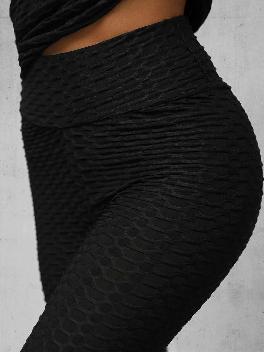 - Legíny s vysokým pasem a reliéfním vzorem