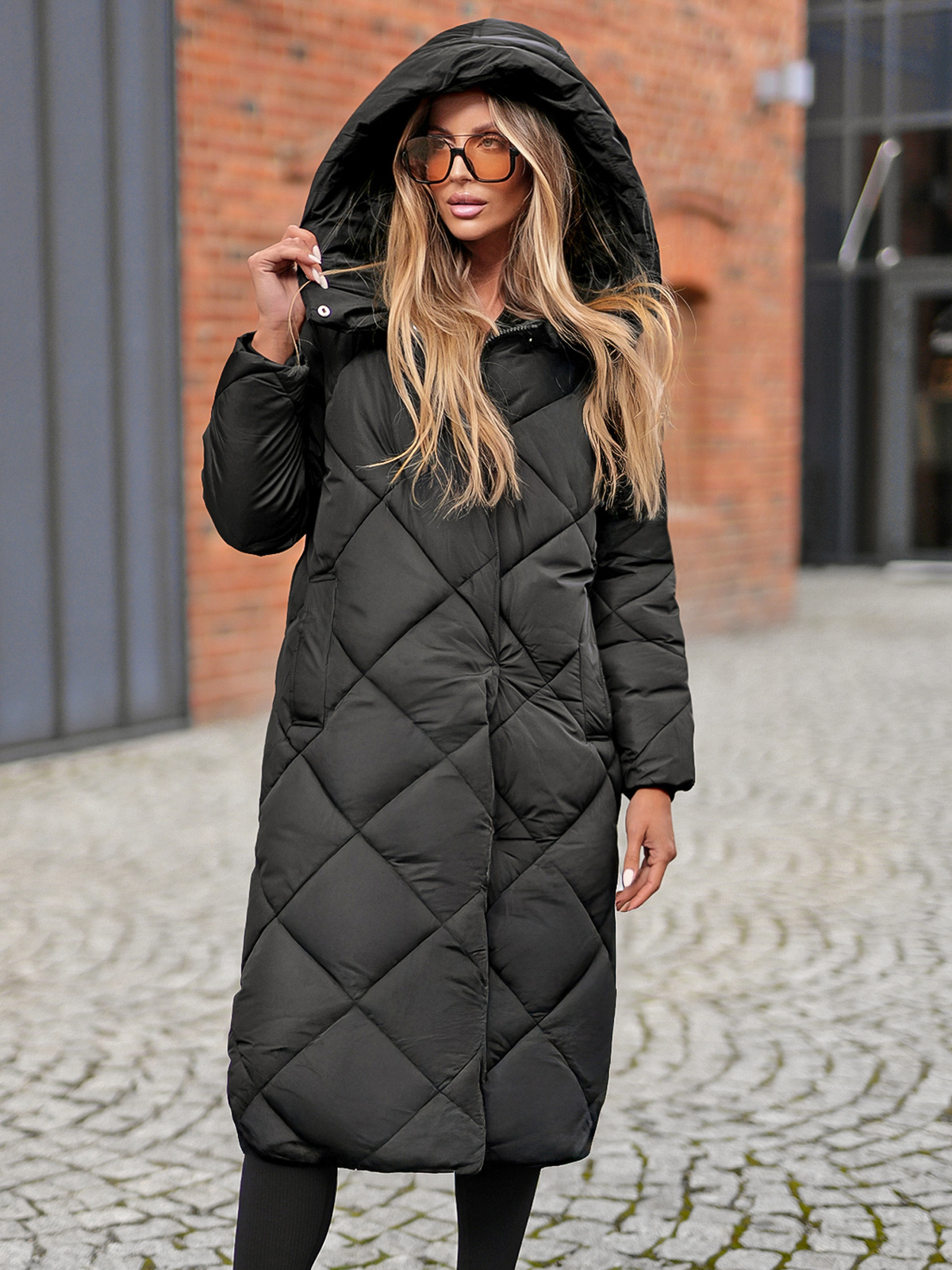 Dámská zimní dlouhá prošívaná bunda černá OZONEE JS/5M3173/392