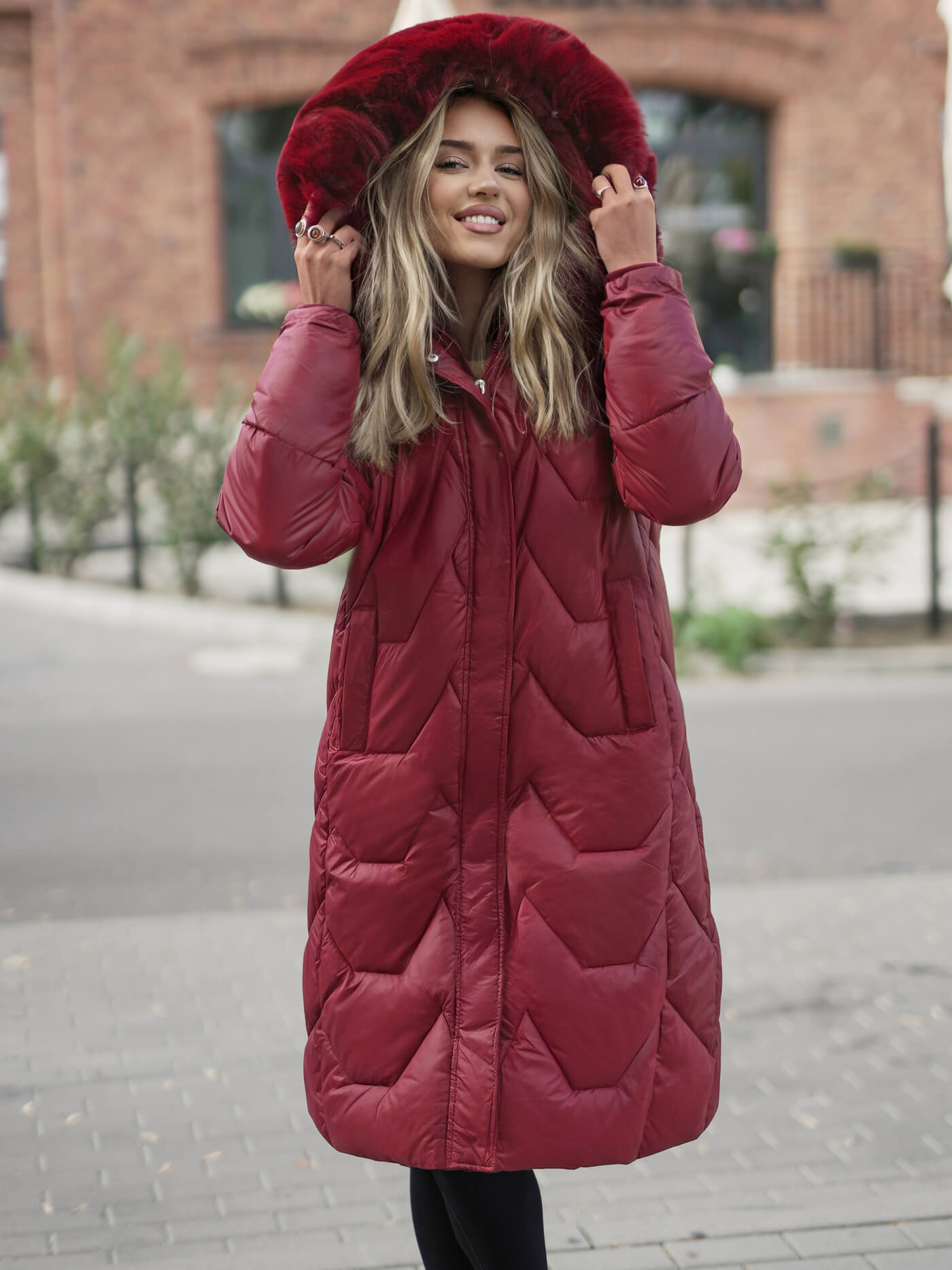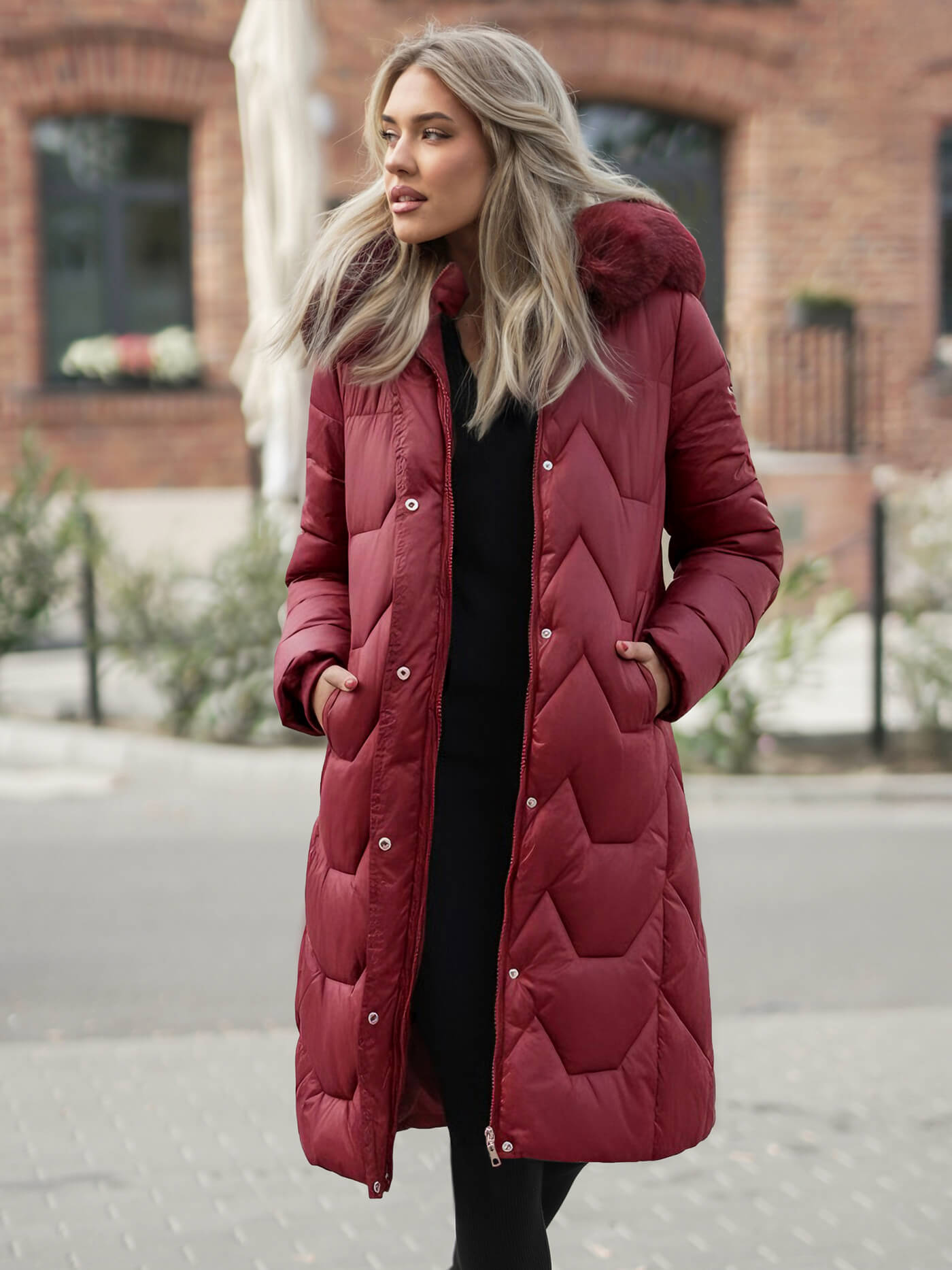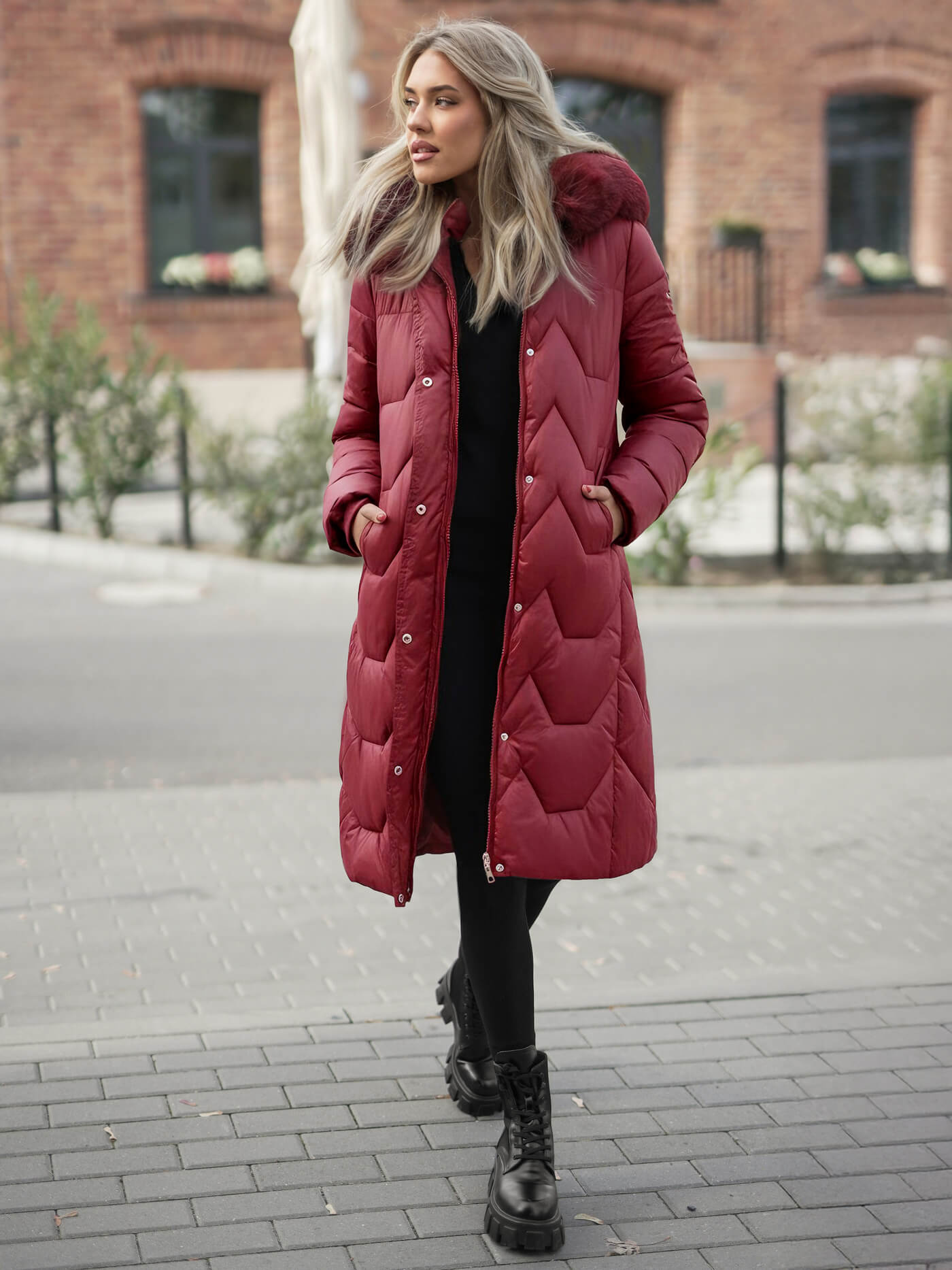 - Dámská zimní bunda po kolena se zapínáním na zip a moderním prošíváním