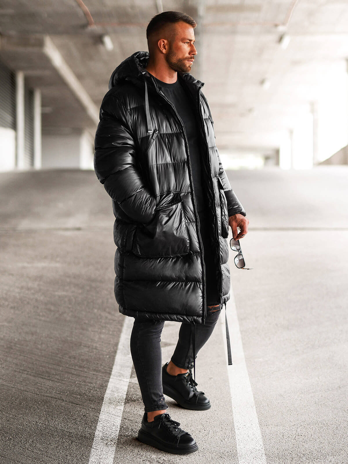 Pánská zimní bunda dlouhá černá OZONEE O/M3205Z