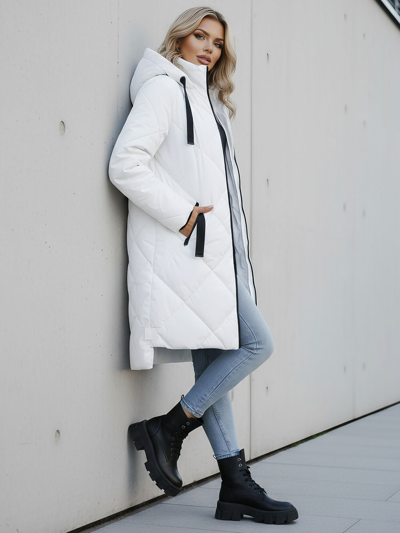 Dámská zimní bunda dlouhá prošívaná bílá OZONEE JS/5M3168/281
