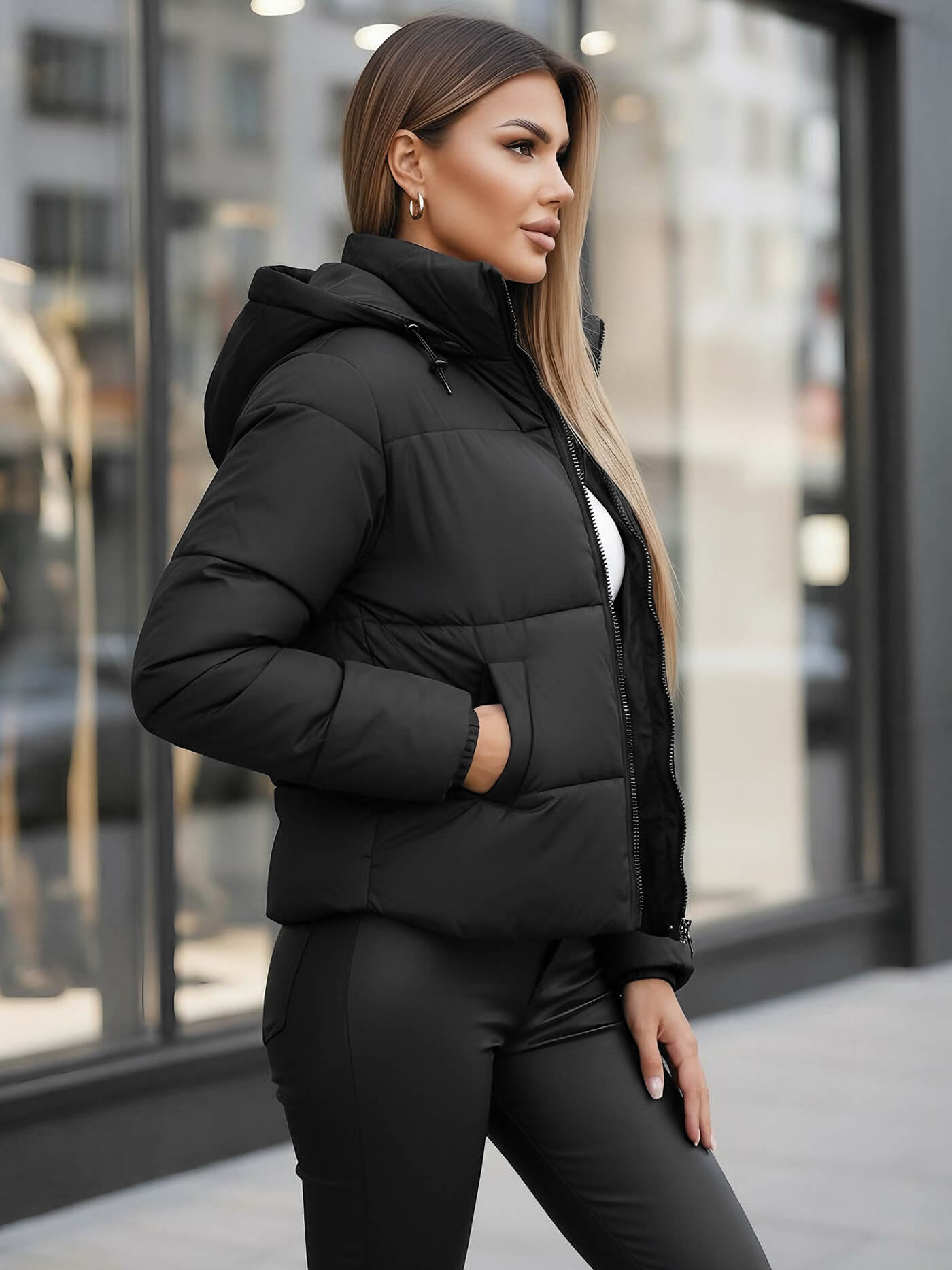 Představovaná dámská bunda je spojením moderního designu a praktičnosti. Její elegantní černá barva z ní dělá šatník, který se hodí k mnoha outfitům. Módní prošívání jí dodává jedinečný charakter, zatímco funkční kapuce poskytuje ochranu před chladem a větrem. Bunda byla navržena pro ženy, které si cení pohodlí a stylu.