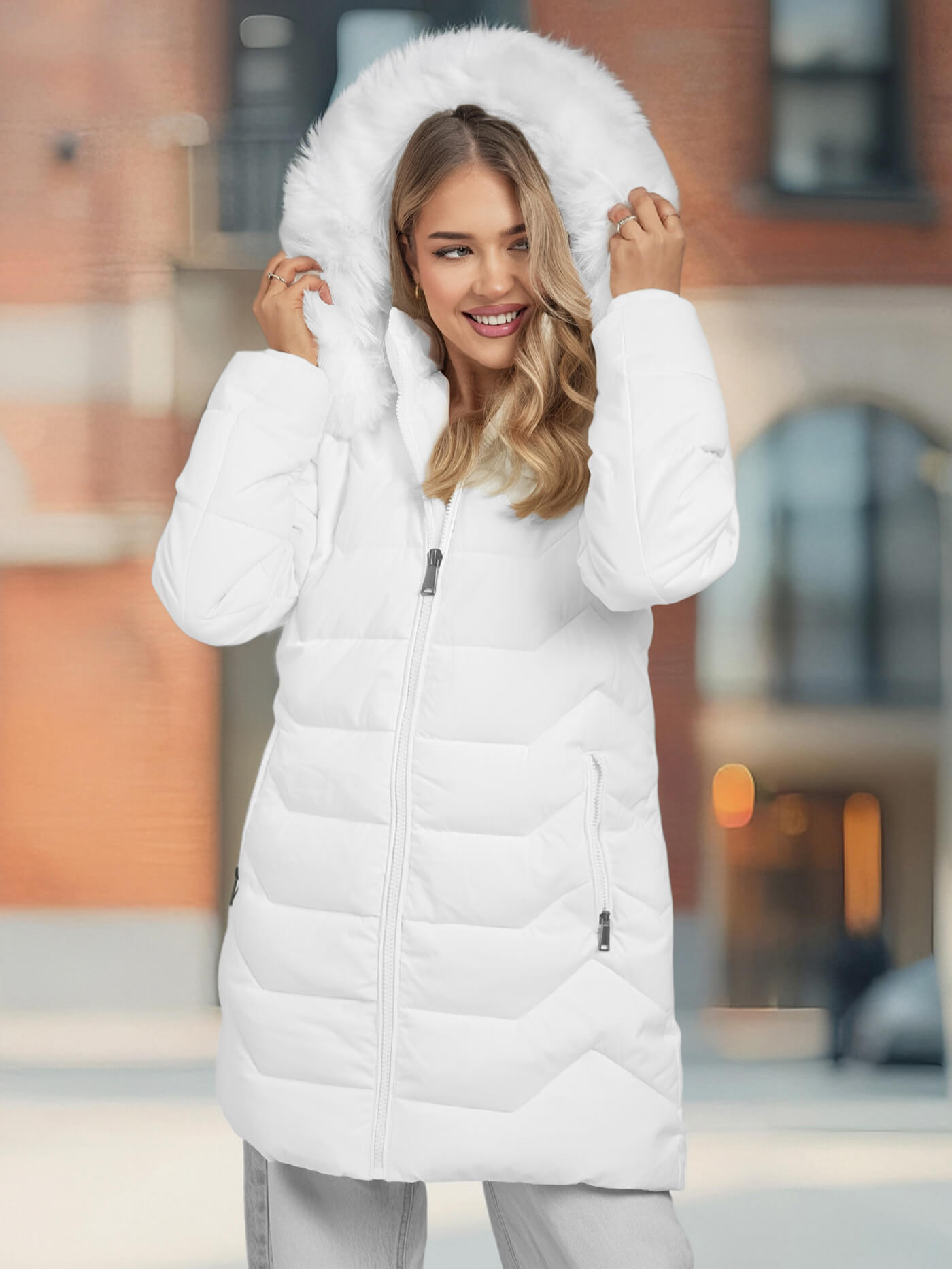 - Odepínací kapuce s odepínací kožešinou