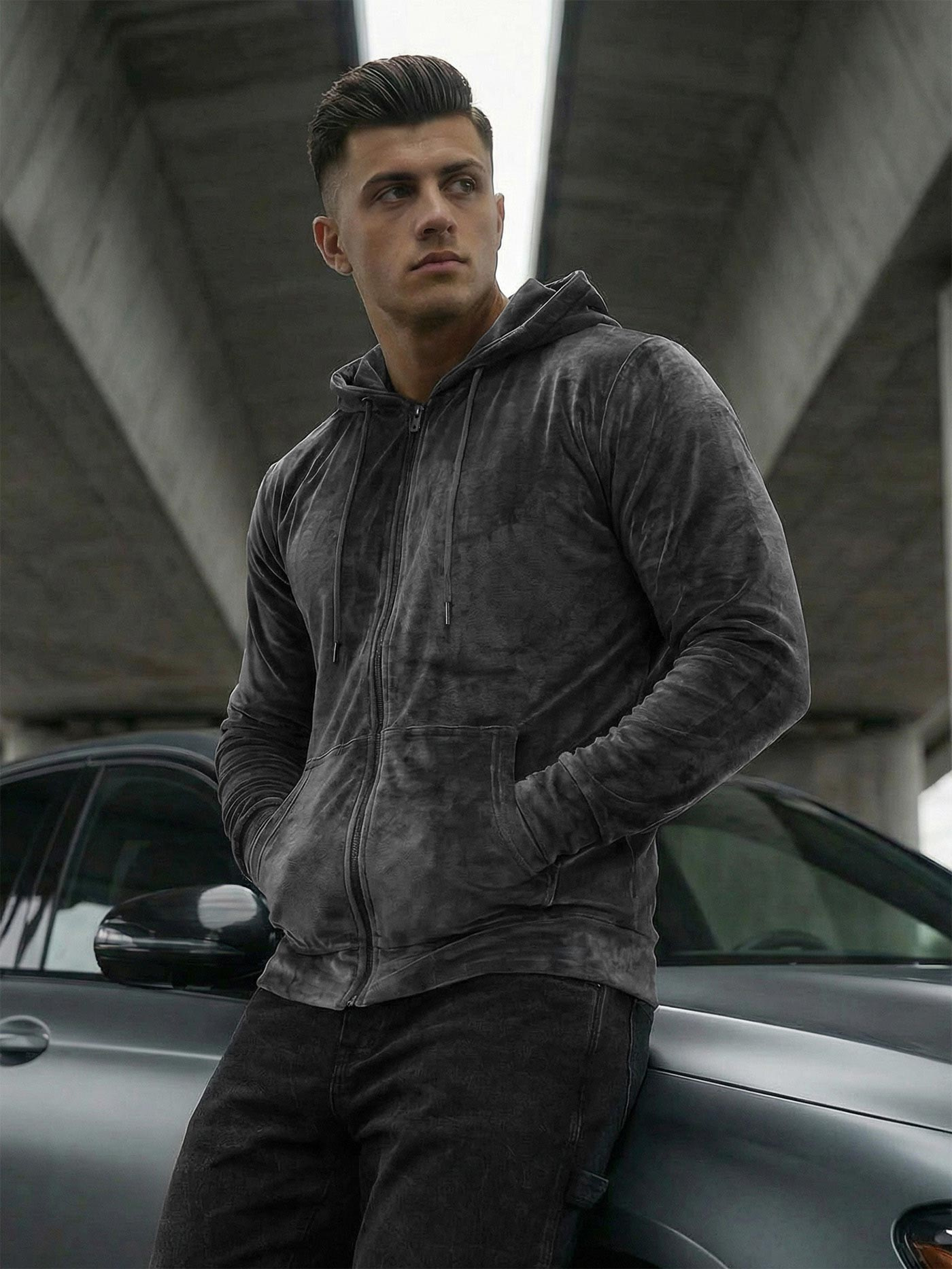 Pánská grafitová velurová mikina s kapucí OZONEE JS/8B1168/6Z - ideální pro každou příležitost