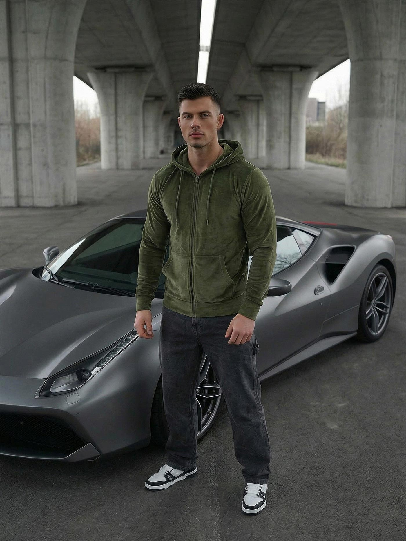 Pánská khaki velurová mikina OZONEE JS/8B1168/29Z - styl a pohodlí v jednom